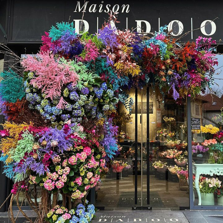 Atelierul de creație florală a fost stâlpul principal al businessului încă de la începuturi. Ulterior, Maison DADOO a crescut, s-a maturizat și s-a transformat într-o agenție de evenimente private și corporate full-service, în care încercăm să le oferim clienților noștri soluții complete și profesioniste de tipul one-stop shop, adică să le punem la dispoziție totul, de la concept, decoruri, elemente de logistică, planning și management de eveniment, parte de catering, artiști și performeri, foto-video, grafică și producție personalizată etc. Deschiderea florăriei, ca punct de vânzare la stradă, a fost un pas îndrăzneț pe care l-am făcut în timpul pandemiei din 2020, locația noastră fiind astăzi un punct de reper central în zona Dorobanți din București, care-i încântă în permanență pe clienți prin decorurile superbe din interiorul și exteriorul florăriei și prin creațiile florale deosebite.